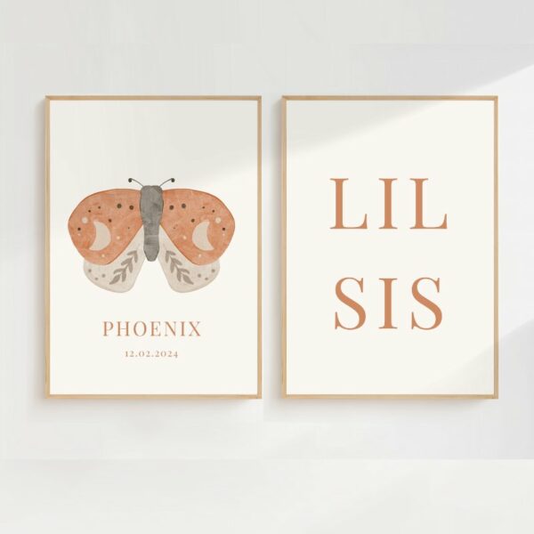 Poster met naam en vlinder – set van 2